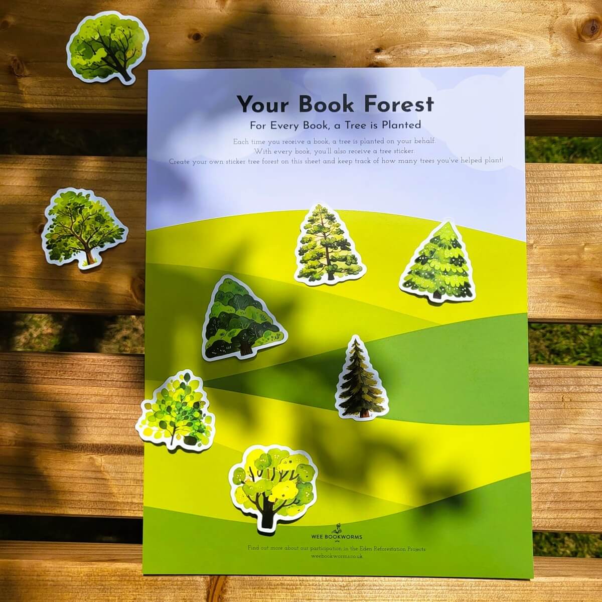 For every order placed, Wee Bookworms plants a tree in partnership with the Eden Reforestation Project. That’s why our subscribers receive a "Your Book Forest" sheet and a tree sticker to start their very own forest. Each subscription parcel includes one tree sticker, so recipients can keep track of how many trees have been planted thanks to the books they’ve received.